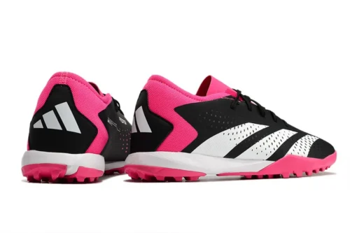 Por baixo, o solado angular com travas baixas e fixas é produzido em borrachas, oferecendo mais aderência aos campos com grama sintética.