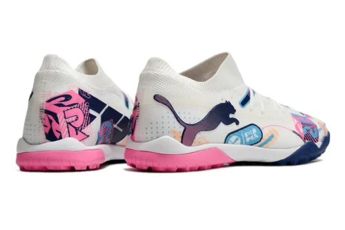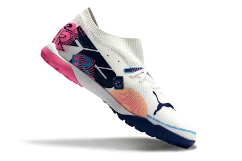 Chuteira Puma Future 7 Match Society – Branco/Rosa/Azul